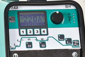 - Digital-Anzeige für Schweißstrom, Zeit und Frequenz – mit Voranzeige und Holdfunktion.